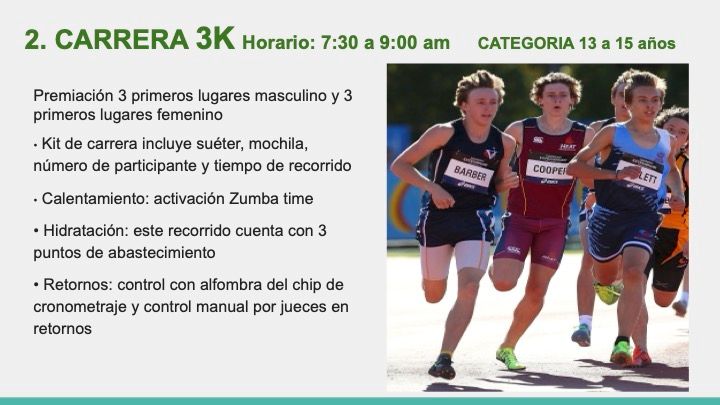 • Kit de carrera incluye suéter, mochila, número de participante y tiempo de recorrido